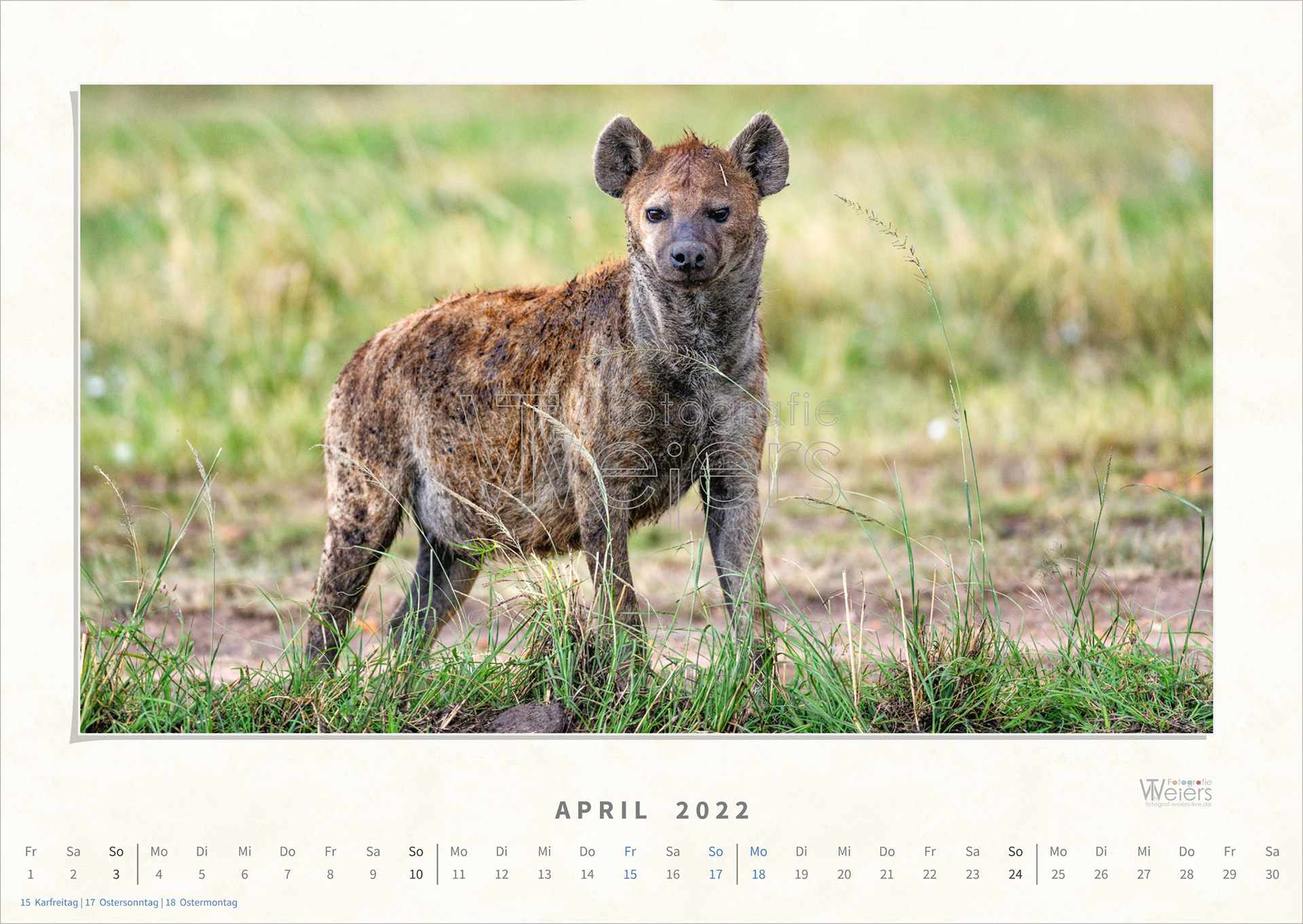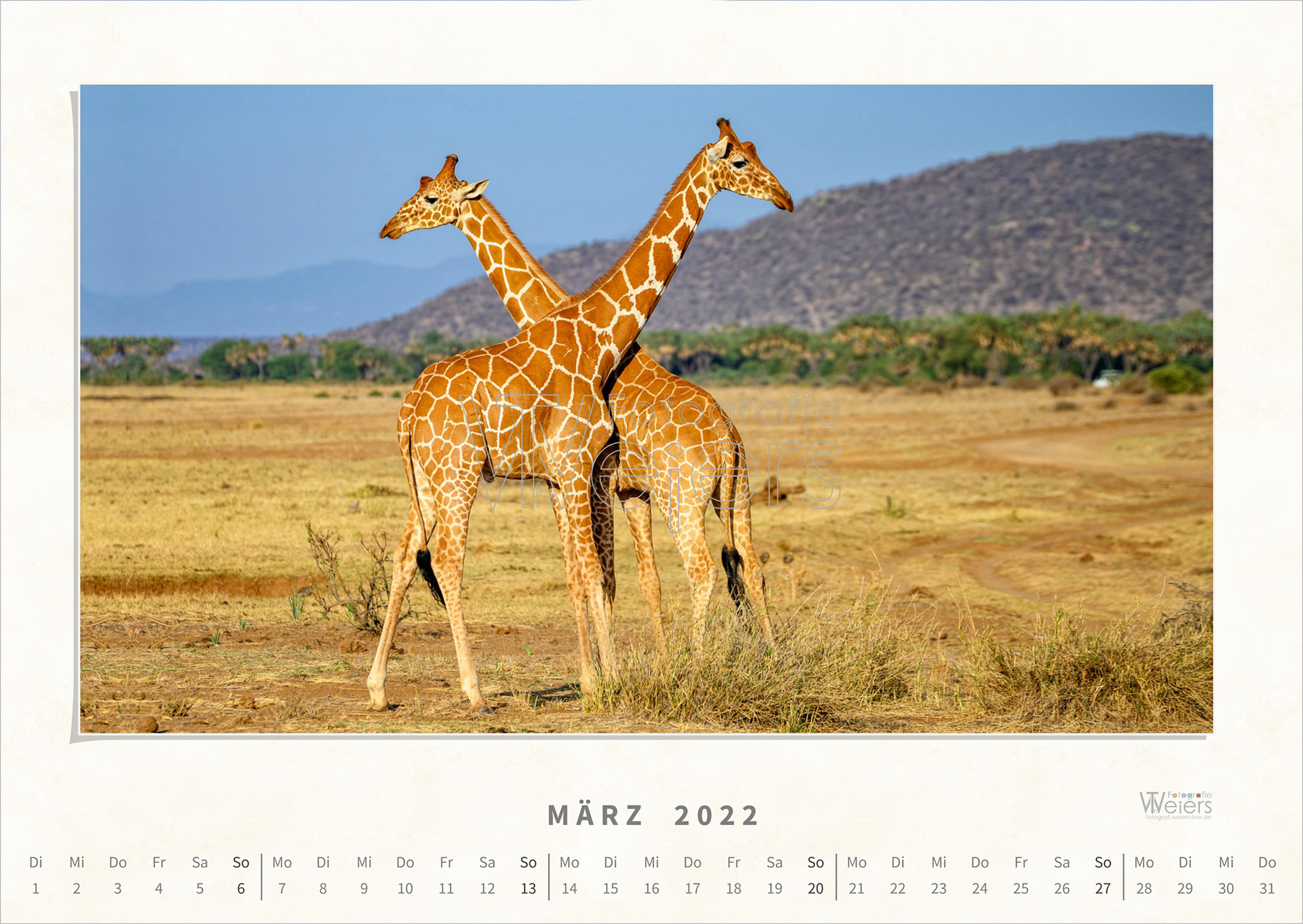 Den Kalender 2022 schmücken Bilder von meiner Reise nach Kenia von Ende September bis Anfang Oktober. Die Auswahl gibt einen Überblick der Artenvielfalt in Kenia.